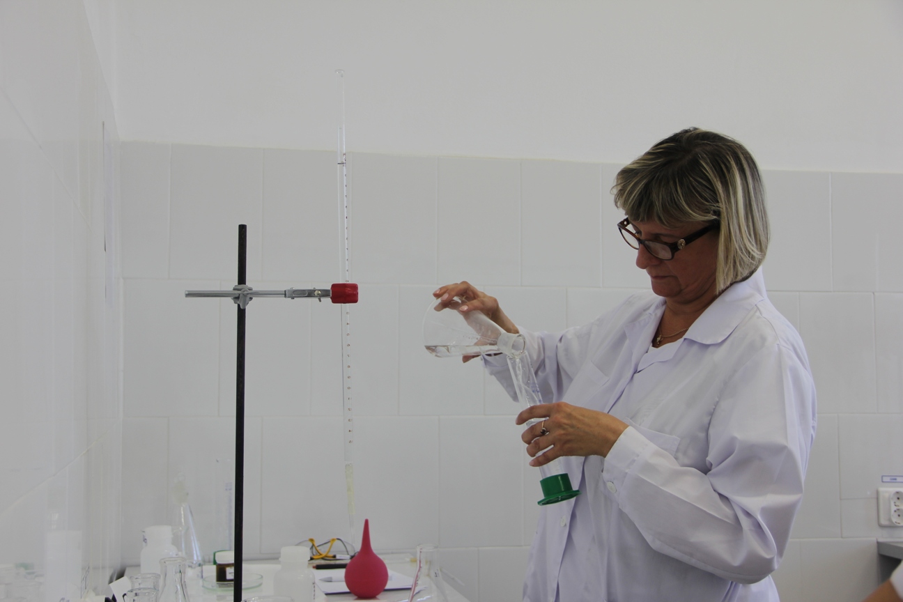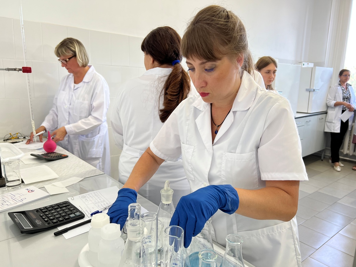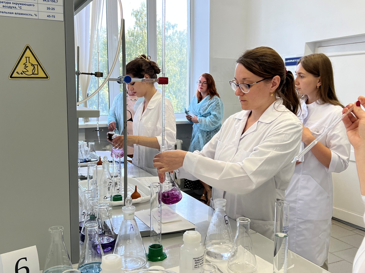 Испытания состояли из теоретического и практического блоков. Сначала участницы ответили на вопросы по химии, охране туда и оказанию первой медицинской помощи. Затем приступили к практическому заданию: провели определение жёсткости титрованием пробы раствором трилона Б в присутствии индикатора эриохром чёрный Т по ГОСТ 31954-2012. Комиссия оценивала работу по нескольким критериям, в том числе учитывались аккуратность, точность в исполнении и расчётах, скорость.