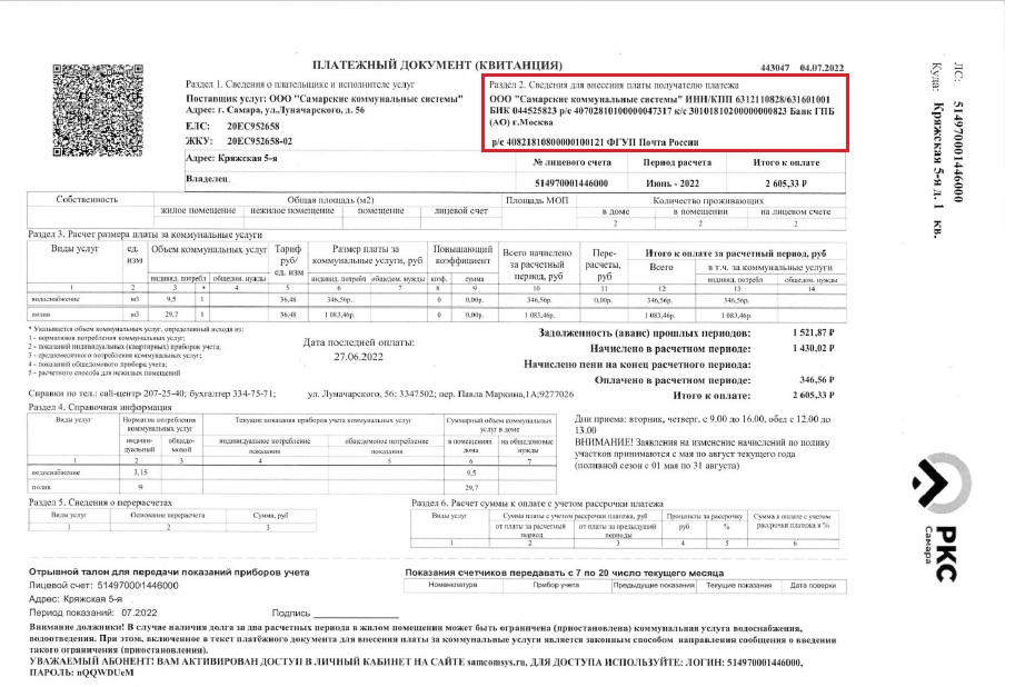 В апреле 2022 года произошла смена реквизитов ООО «Самарские коммунальные системы», денежные средства должны перечисляться абонентами на новые, указанные в квитанциях, реквизиты. Все абоненты были оповещены об этом, информация была размещена, в частности, на всех квитанциях ресурсоснабжающей организации.