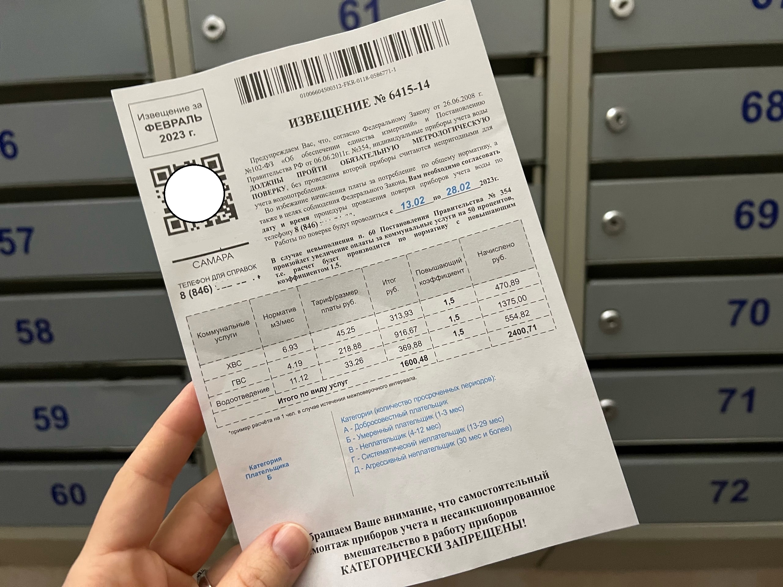 Эффект неожиданности снова сработал: самарцы получили очередную порцию листовок с агрессивной рекламой метрологических услуг. В извещении, стилизованном под платёжный документ, содержится предупреждение о необходимости срочной поверки приборов учёта. Для убедительности есть ссылки на закон и угрозы повышения тарифа в случае неисполнения до конца месяца.