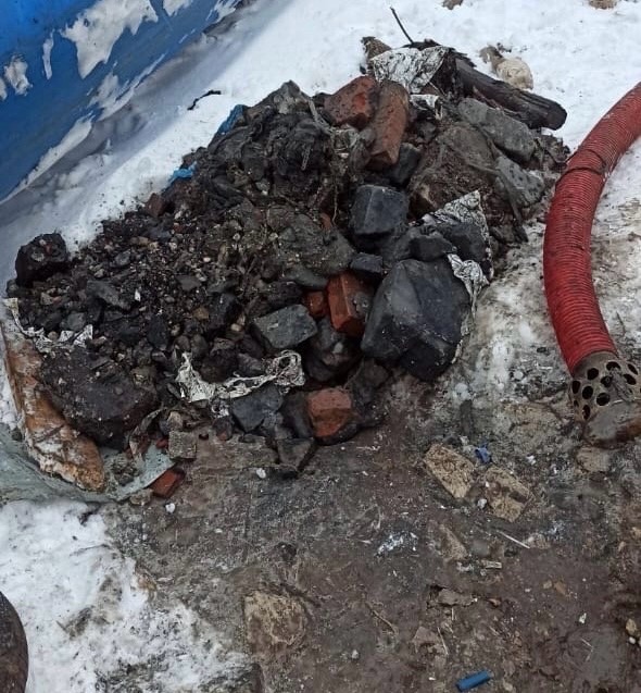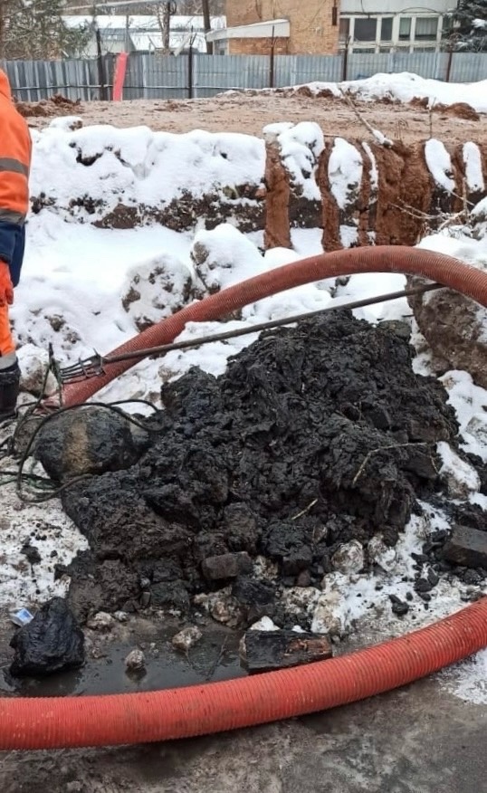 Одно неверное движение - и водоотведение жилых домов в центре города оказалось под угрозой. В конце декабря строительная организация работала во дворе 128 дома по Московскому шоссе. Во время дорожных работ сотрудники компании сбили крышки с колодцев и строительные материалы попали внутрь. Кирпичи, обломки асфальта мгновенно забили канализационную линию и стоки начали подниматься наверх. Произошёл излив на поверхность.
