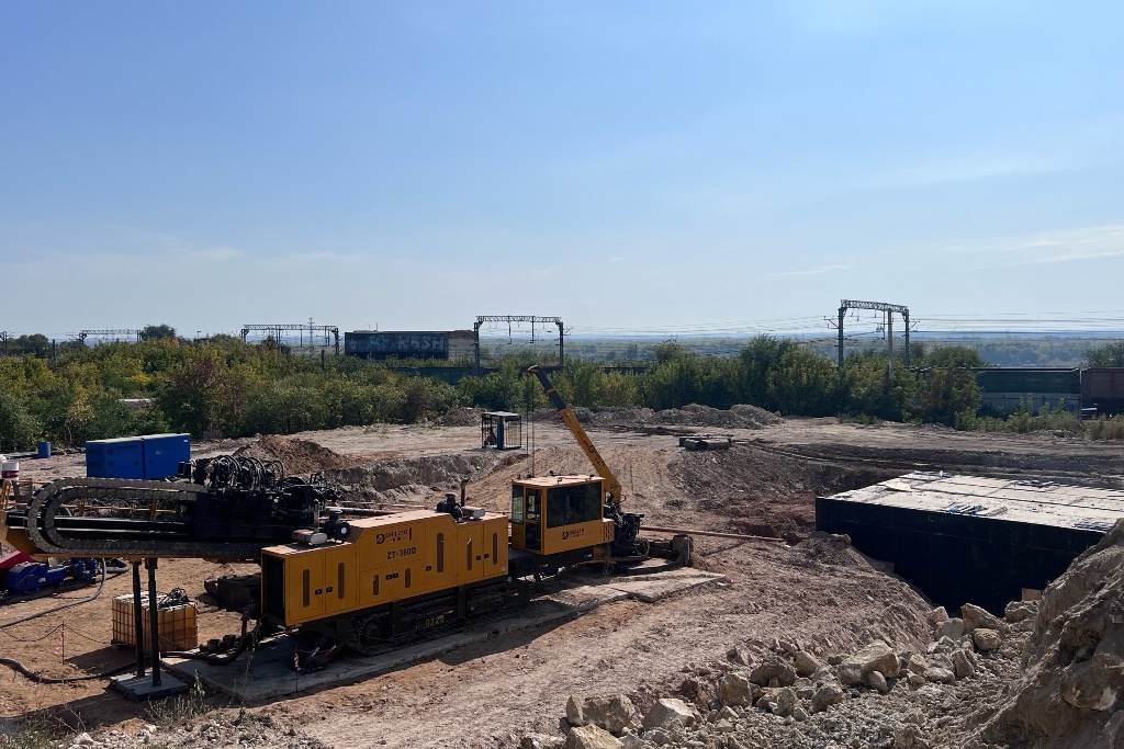 Строительство подошло к интересному этапу: специалисты готовятся завести участки труб под железную дорогу, как это предусмотрено проектом. Сейчас на берегу реки Самары идёт подготовка специального футляра, с помощью которого водоводы будут монтироваться под ж/д путями - причём, с помощью той же установки, которая бурила тоннели для водоводов под рекой. И там же на берегу уже ожидают присоединения трубы, прошедшие под дном реки Самары.